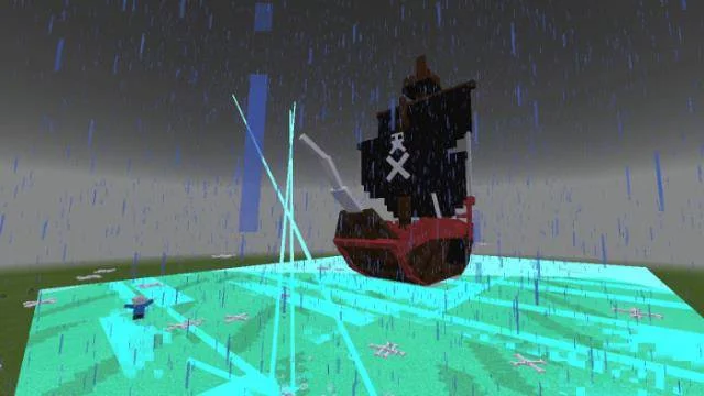 Санс обладает в Minecraft BE зашкаливающим количеством здоровья в 100 тысяч единиц. Передвигается, естественно на своем корабле – куча эффектов как при запуске фейерверков на Новый год.