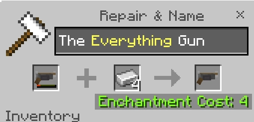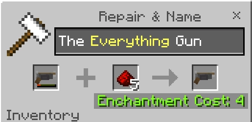 Починить пистолет в Minecraft PE можно при помощи редстоуна или железных слитков. Редстоун способен восстановить за раз пятую часть прочности, а железный слиток – четвертую.