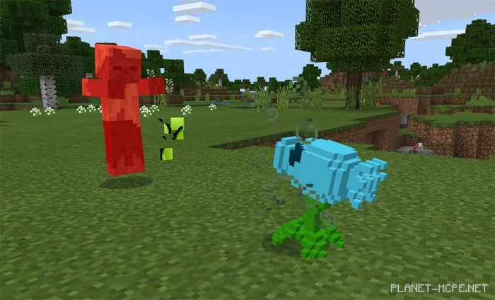 Пять различных существ из популярной игры в жанре защиты башни под названием Plants vs. Zombies появятся в мире Minecraft Pocket Edition после установки мода «Plant VS Zombie (Растения против зомби)». Некоторые из новых мобов обладают интересными способностями в МКПЕ, например возможностью стрелять горохом в зомби. Это очень крутое дополнение с некоторыми очень подробными моделями.