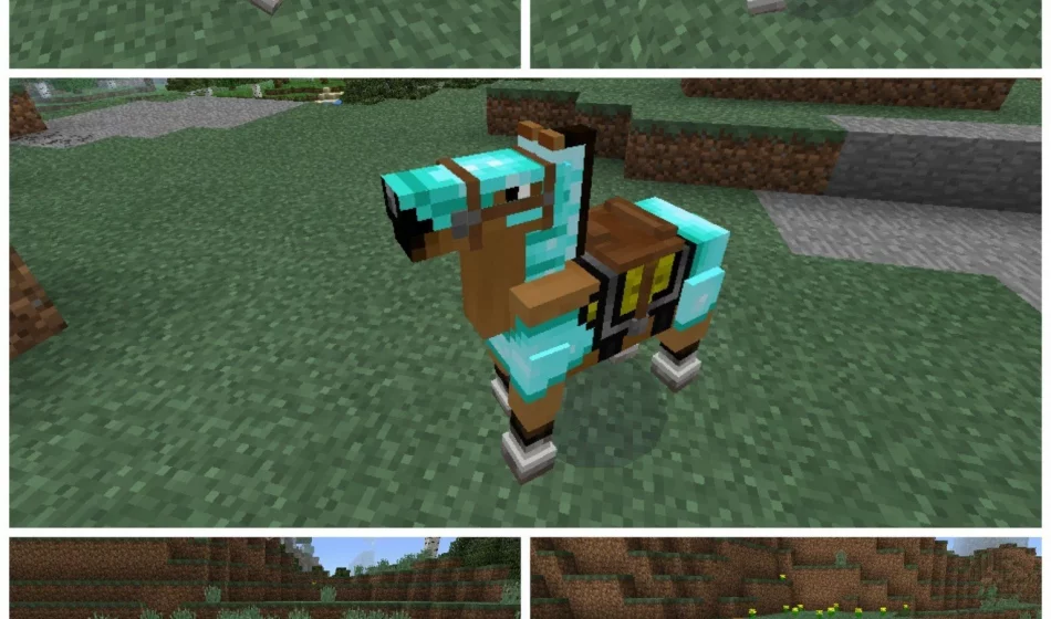 Для того чтобы одеть на своего коня броню, наденьте на него для начала обычное седло — просто нажмите им по коню, а затем возьмите в руки броню и таким же нажатием по коню броней вы оденете её на коня!