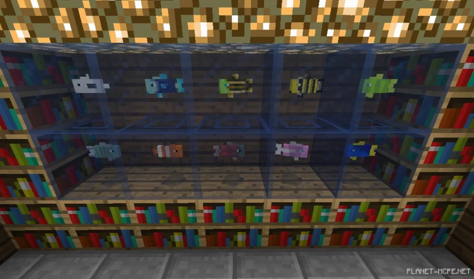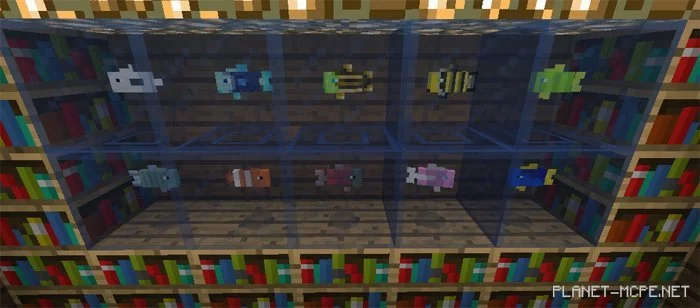 Для того чтобы сделать с обычного резервуара аквариум — заполните пустой резервуар водой для начала, чтобы получить заполненный резервуар. Затем нажмите заполненным резервуаром по рыбе, чтобы захватить и поместить рыбу в свой резервуар. Словленная рыба может быть выпущена в другом месте, например, в аквариуме, который в будущем будет доступен.