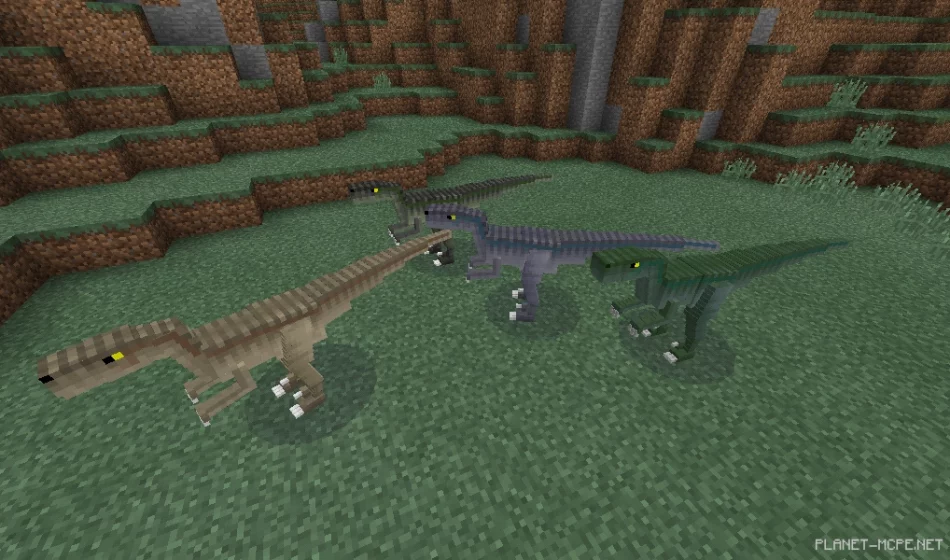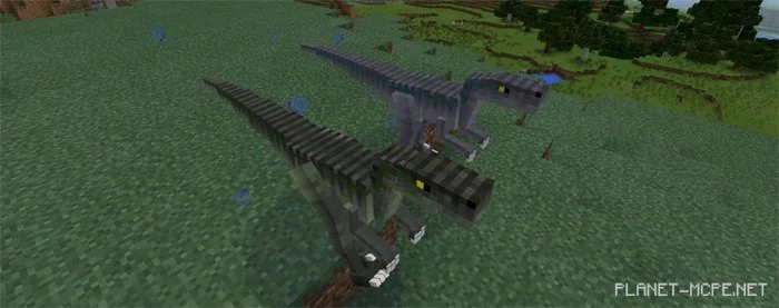 Велоцираптор (яйцо для спавна id — 2843) существовали на земле в периоде от 75 до 71 миллионов лет назад. Это не совсем «вчерашний зверёк», который находился под видом вымирания, и как вы поняли модификация пытается сохранить некоторые вещи максимально реалистичными, вещи которые были основаны на современной дикой природе. К сожалению они не порождаются в мире MCPE самостоятельно т.к. мы живём в реальном времени и было бы глупо среди всех существующих животных встретить древний уже вымерший вид двуногих динозавров из семейства дромеозаврид. Они могут быть порождены только с помощью яйца для порождения.