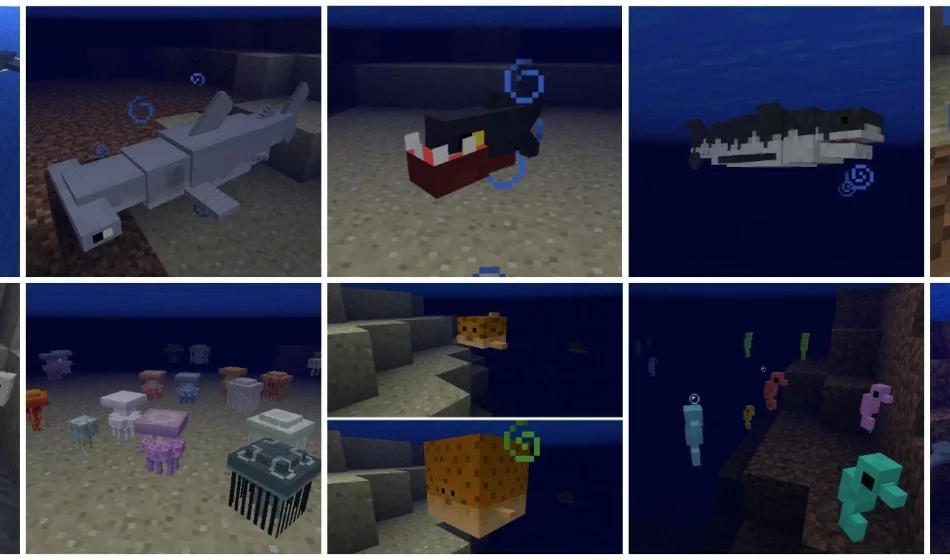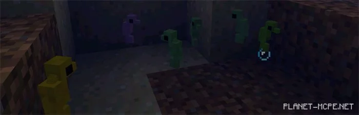 Морские коньки (яйцо для спавна id — 2822) можно встретить под водой. Они так же безвредные как и рыбы.