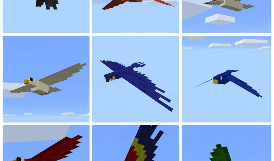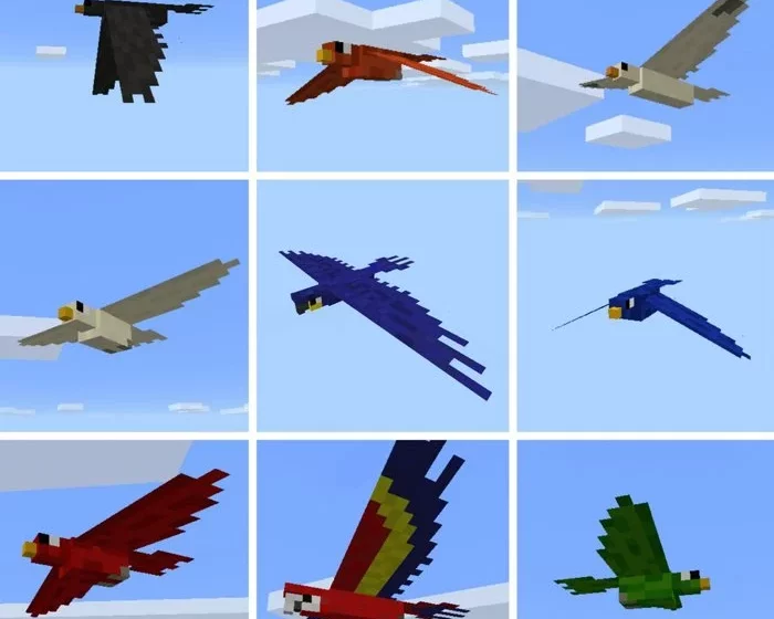 Всего существует 9 различных видов птиц. Это смесь некоторых экзотических, таких как попугай, а некоторые такие как вороны.