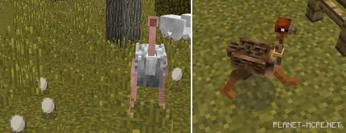 Страусы не летающие птицы, но тем не менее их можно использовать для быстрого перемещения по миру MCPE. Страусы довольно быстро бегают, поэтому убедитесь что вы в безопасности.