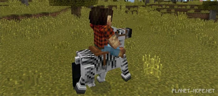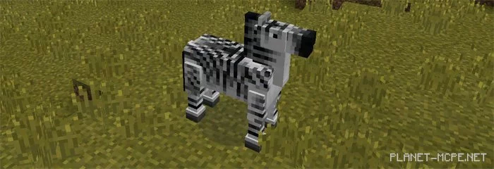 Зебры — это довольно красивые животные, которые ходят по группам 3-4 зебры в саване. Вы можете приручить зебру путем кормления пшеницей (нажмите по зебре пшеницей). Когда процесс приручения будет успешным вы увидите частицы сердец. После этого вы смело можете снаряжать зебру седлом, чтобы оседлать её.