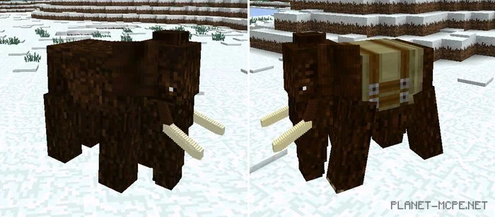 Мамонты это довольно таки древние животные, которые жили на нашей планете уже очень давно. Но, в Minecraft они до сих пор живут и получили подобные черты слонов. Мамонтов вы так же сможете приручать и ездить на них.