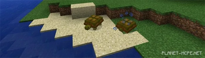 Черепахи (яйцо для спавна id — 2815) — это красивые существа, которые могут одновременно плавать в воде и ходить по суше. Чтобы приручить черепаху — возьмите сахарную тростинку и покормите черепаху — у вас появится шанс приручить её. Будьте бдительными одна из черепах, а именно «Notch черепаха» имеет способность взрываться если вы очень близко подойдёте к ней.