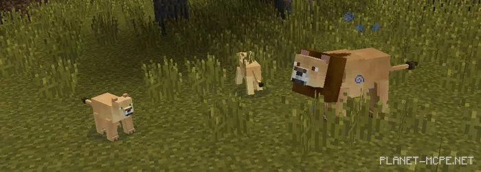 Львы (яйцо для спавна id — 2824) — это большие кошки, которые выглядят очень мило, особенно львята, но они не таки уж и глупые. Они могут быть очень опасными в некоторых моментах. Попробуйте приручить их с помощью говядины или свинины (используя свинину у вас появляется большая вероятность того, что вы приручите льва), если вы решитесь на это.