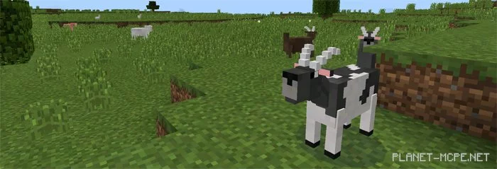 Козы (яйцо для спавна id — 2802) очень любят поесть. Они едят упавшие предметы на землю, траву, кусты и цветы.