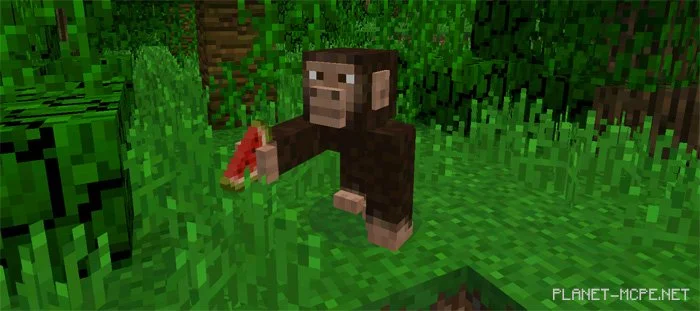 Шимпанзе (яйцо для спавна id — 2852) — это маленькие обезьяны, которые иногда могут подойти к вам и предложить дыню. Для того чтобы принять подарок от шимпанзе, нажмите по нему пустыми руками.