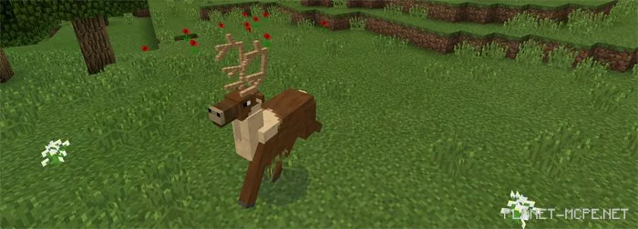 Олени (яйцо для спавна id — 2812) естественно боятся людей. Олени будут убегать как только увидят вас. Я думаю, что это отличная возможность устроить сезон охоты в Minecraft PE.
