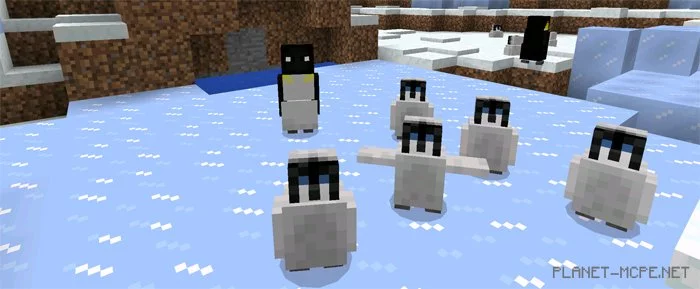 Пингвины (яйцо для спавна id — 2844) можно встретить в зимних ландшафтах, где есть снег. Пингвины очень любят плавать.