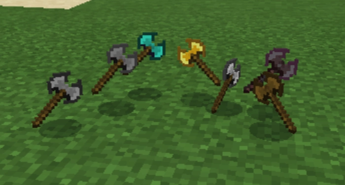 А вот арсенал оружия пополнится благодаря моду еще на 7 видов секир. Они крафтятся из таких же материалов, как и мечи.
