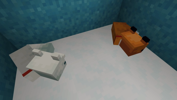 Работает, кстати, и с полярной вариацией животного. После того, как вы приручили хитрюгу, на ней автоматически появится ошейник, и она сможет даже сидеть. Только учтите, что против монстров они не сражаются в MCBE. А лисят придется точно также приручать. Приятной игры!
