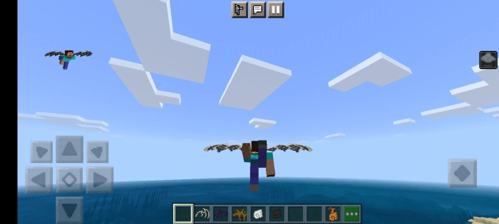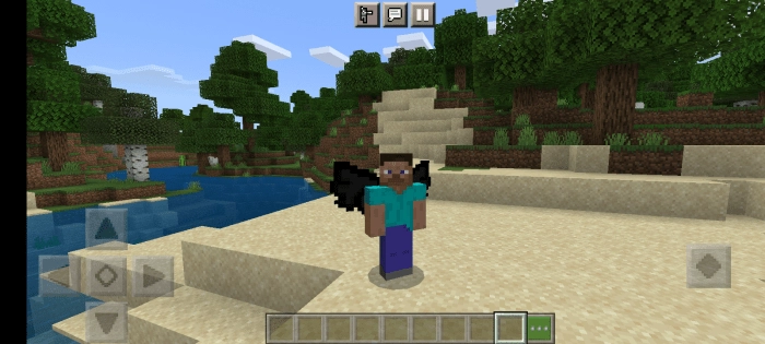 Чтобы надеть крылья в Minecraft Bedrock Edition, используйте длительное нажатие. Чтобы управлять, просто поворачивайте камеру. Крылья мода можно найти в MCPE в структурах, например, в храмах, пирамидах, и прочих местах. Приятной игры!