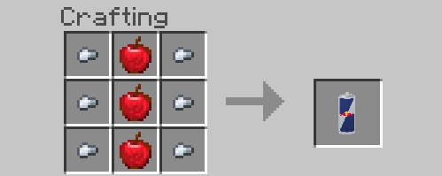 Чтобы скрафтить энергетик из модификации, не нужно изучать химию, а также искать всяческие химикалии. Просто совмещаем в МКПЕ несколько кусочков железа и яблок, и все готово. Приятной игры!