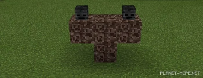 Спавн робота ничем не отличается от уже известного Вам спавна Иссушителя в мире МКПЕ. Просто разместите 3 головы скелета-иссушителя на 4 железных блоках, как это показано на скриншоте ниже.