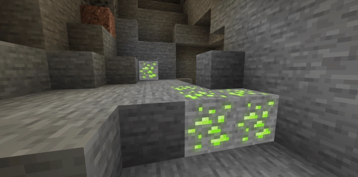 Новая руда, которая появится в игре, позволит вам быстро и с комфортом поднять уровень. Достаточно отправиться на раскопки! Руда опыта находится ниже точки Y:20, и ее ни с чем не спутать. Она светится кислотным цветом и отличается от соседних блоков в Майнкрафт на Андроид.