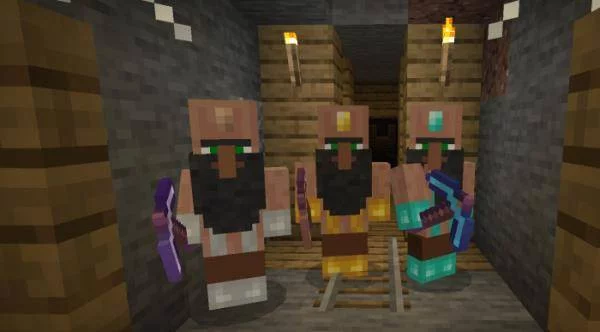 Каждый из торговцев мода Шахтеры-торговцы (Miner) имеет определенный набор товаров в Майнкрафт ПЕ. Кто-то имеет специализацию по железу, а другой, напротив, может предложить в Minecraft драгоценные камни.