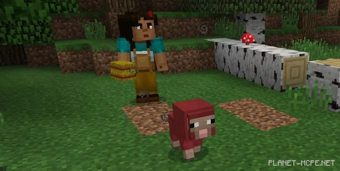 Питомец: Бросьте взрывающееся зелье слабости в овцу, а затем накормите её красным грибом. К этому моменту она должна быть маленькой овцой, но ещё не прирученной. Чтобы приручить её, Вам нужно будет накормить её тюком сена. Она будет следовать за вами, но она ничего не будет атаковать, так как это еще только ребенок.