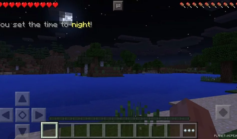 Так же в можете изменять время суток в игре, к примеру сейчас у нас день, а мы хотим установить в мире Minecraft PE ночь.