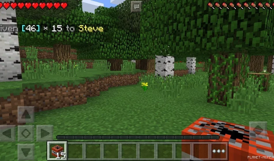 И вот когда вы введёте команду, вы получите 15 блоков тротила. Смотрите здесь все ID блоков и предметов в Minecraft PE, чтобы вы смогли себе выдать все что угодно, что есть в MCPE! =)