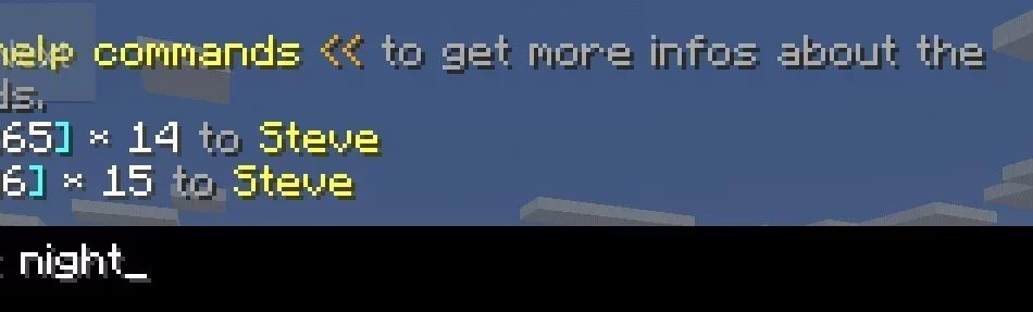 Для этого мы в чате (в командной строке) вводим команду /timeset night