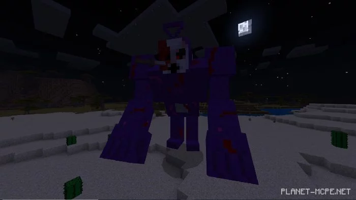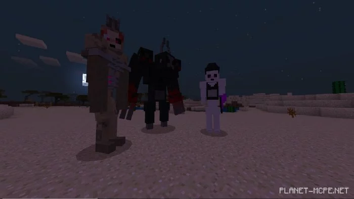 Это дополнение добавляет в общей сложности 7 монстров, которых Вы сможете найти в любой точке мира, но они будут появляться только ночью, или Вы можете заспавнить их яйцом спавна в творческом режиме Minecraft Bedrock.