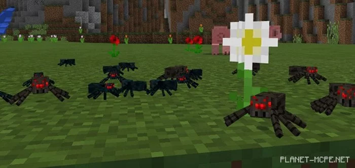 Мод «Smaller Spiders (Более маленькие пауки)» уменьшит размеры всех пауков мира Minecraft PE (то есть обычных пауков и пещерных пауков) до более реалистичного размера. Теперь их будет труднее убить, так как область удара по ним также значительно уменьшилась. Однако, для того чтобы сбалансировать их силы, им была дана новая слабость и это вода.