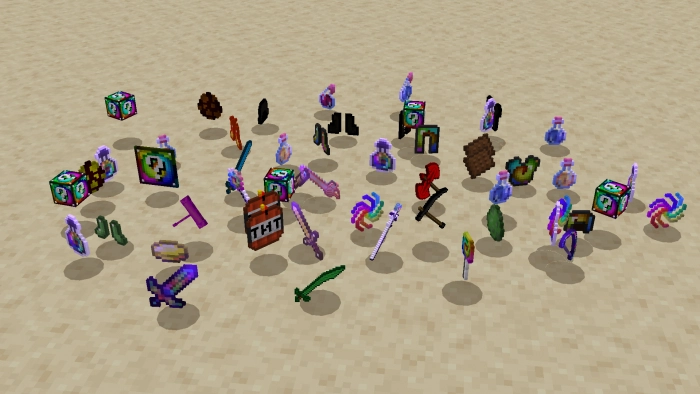 Ведь помимо лакиблоков в Minecraft Pocket Edition автор позаботился и о новых мобах. Это могут быть как обычные, рядовые монстры, так и очень сильные боссы, с которыми справится только опытный игрок. Количество событий в моде превышает две сотни.