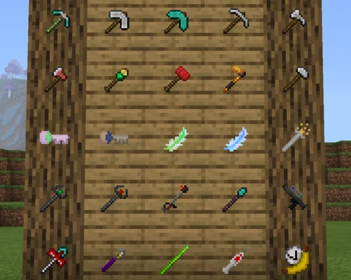 В общей сложности модификация Сумасшедшие инструменты (Crazy Tools) вводит в Майнкрафт на Андроид 25 инструментов, которые пригодятся вам в режиме выживания. Так что если любите хитрить, то скачайте его для Minecraft. Вот какими свойствами они обладают: