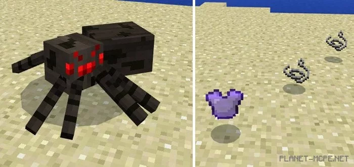 Дроп — предметы, которые выпадают с мобов при убийстве в МКПЕ. Количество дропа было увеличено для большинства мобов в игре. Но поведение мобов так же было изменено, чтобы сбалансировать добычу и сложность убийства моба. Например, у пауков мира Майнкрафт ПЕ есть шанс сбросить зачарованный предмет.