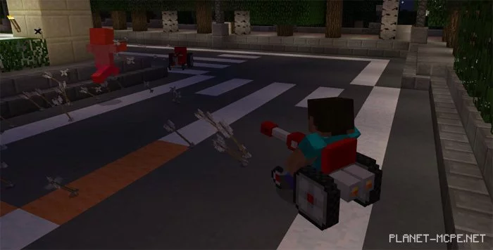 Кресло на колёсах обнаруживает расположенных поблизости враждебных мобов мира Minecraft PE и автоматически стреляет в них стрелами. Просто расслабьтесь и смотрите, как разворачиваются события! (Или возьмите лук и попытайтесь помочь.)