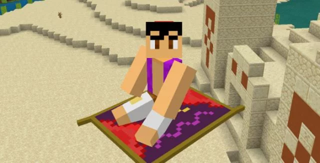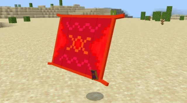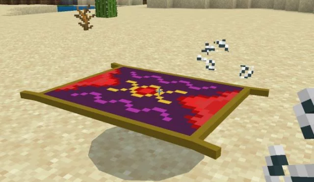 Путешествуйте по миру Minecraft Bedrock на ковре-самолете с модом «Tiger’s Magic Carpet (Магический ковер тигра)»! Это новый функциональный воздушный транспорт, который Вы можете найти в творческом инвентаре, либо получить с помощью команды «/summon tft:mcarpet».