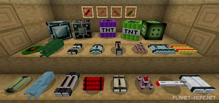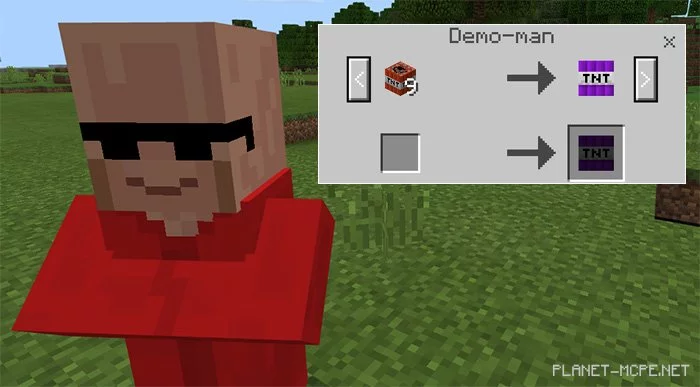 Превратите некоторых мобов в различные виды тротила, использовав мод «TNT++ (ТНТ ++)». Также Вы сможете получить новые взрывчатые вещества в выживании Minecraft Bedrock, торгуя с деревенским «Демо-человеком» (заменяет монаха), используя порох и тротил. Этот мод также привнесёт некоторые изменения к взрывоопасным предметам и взрывчатке.