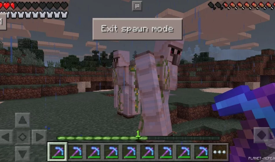 Потом тапни по блоку и существо появится. Чтобы выйти, нажми «Exit spawn mode».