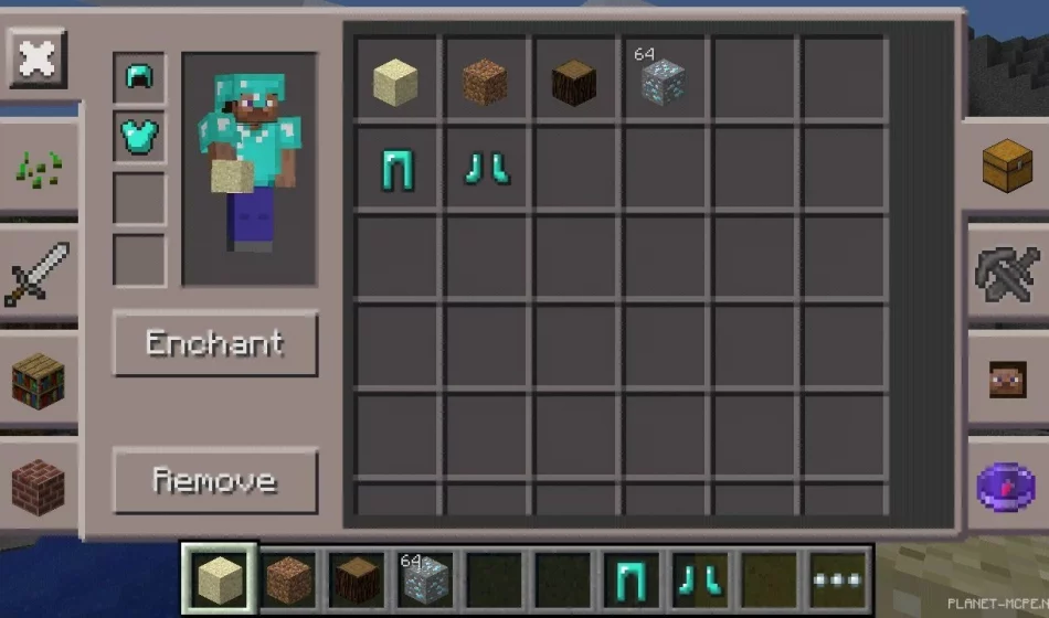 Программа хорошо интегрирована в стандартный ГПИ (Графический Пользовательский Интерфейс) в Майнкрафт на Андроид, поэтому на экране не будет лишних кнопок.