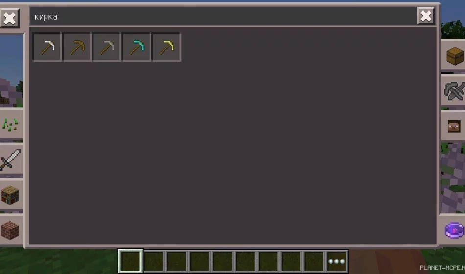 Есть поисковая строка. Введи туда название и система найдет его среди всех ресурсов. Нам нужно найти кирку, мы пишем в поле: «кирка», и отображаются все варианты.