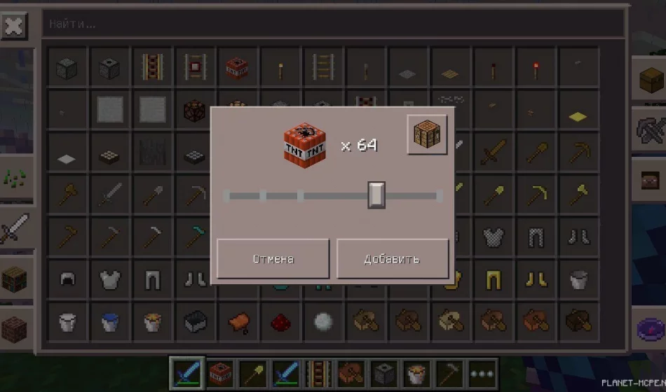 Особенность разработки в том, что она взаимодействует со всеми ранее установленными модификациями для Minecraft Bedrock Edition с помощью Blocklauncher. Так, если ты скачал и установил Factorization, то все добавленные элементы получишь в творческом инвентаре. А для режима выживания используй Toolbox — открой ГПИ и получи все необходимое в несколько кликов.