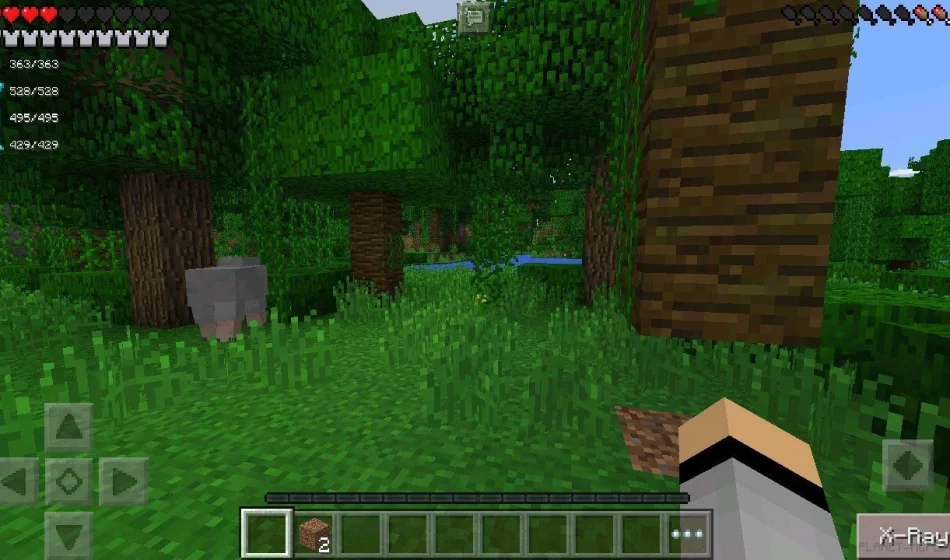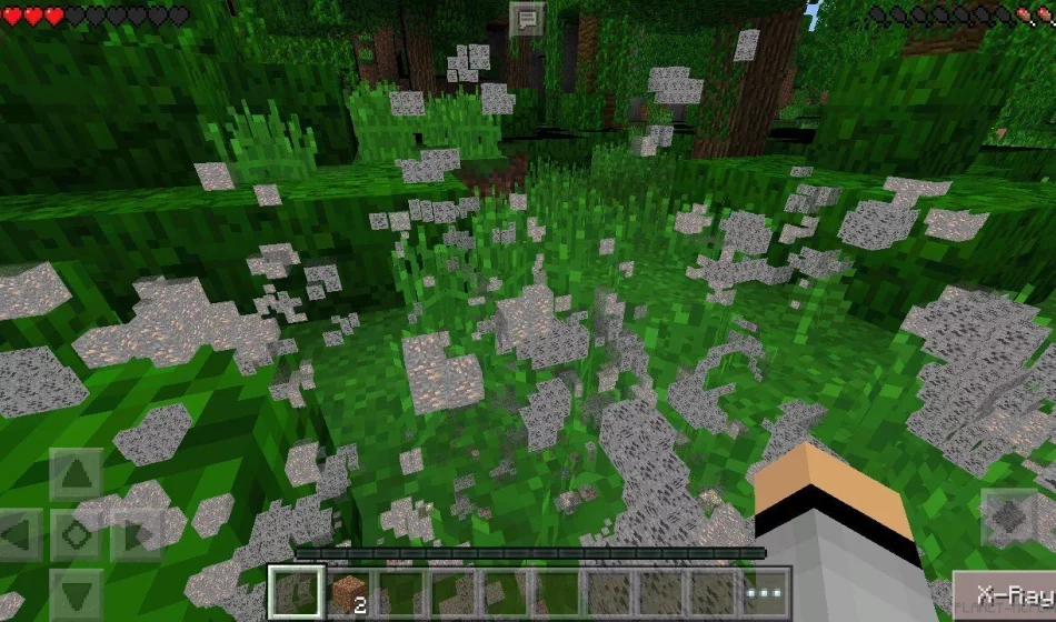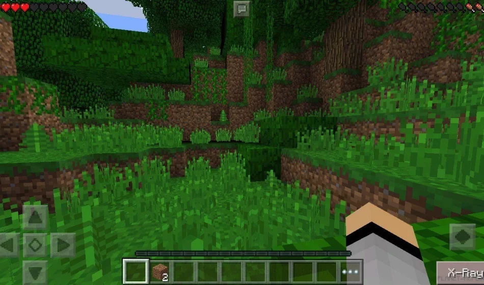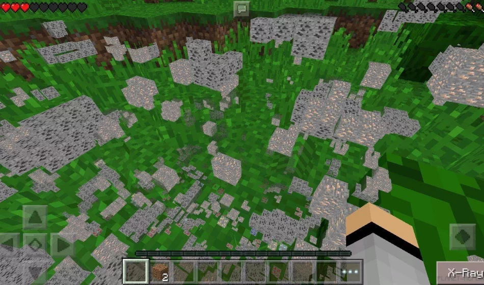 После включения опции ты увидишь новую кнопочку в правом нижнем углу экрана: «X-Ray». Клацни на неё, и глобальные изменения в Minecraft на Android вступят в силу.