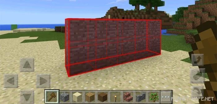 Главный элемент — палочка, чтобы получить её, введи команду (//wand). Сделай этой палочкой длительное нажатие по земле в Майнкрафт на планшет, чтобы выбрать первую позицию. Затем коротким нажатием выбери вторую позицию.