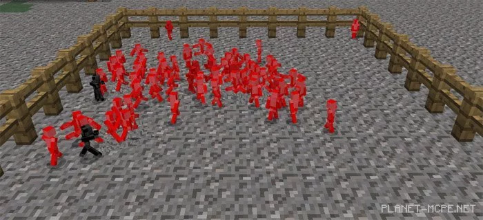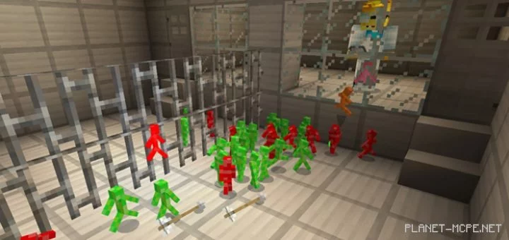 После подготовки войск Вы можете разрушить стену и наслаждаться зрелищным боем команд. Как только бой начнётся, солдаты будут биться до тех пор, пока не останется в живых только одна команда! Данная карта для Minecraft PE лучше всего подходит небольшой компании друзей, так как при игре компанией более 5 игроков, Вам просто не хватит солдат для полноценной битвы.