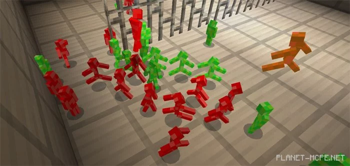 Игрушечные солдаты — маленький двуногие существа, которые являются заменой различных мобов в мире Майнкрафт Покет Эдишн. Все солдаты разделены на несколько команд (красные и зелёные), и они, как Вы уже догадались, враждебны по отношению друг к другу. Игрокам же нечего бояться, так как солдаты будут атаковать только друг друга. Перед стартом боёв ограничьте команды стеной, чтобы они не начали атаковать друг друга раньше времени. Также обратите внимание на то, что отдельные типы классов можно привлекать и вести за собой с помощью определённых предметов: