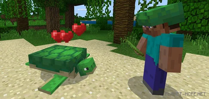 Есть несколько преимуществ в приручении Черепахи. Они будут следовать за Вами, а также Вы сможете использовать их для своей верховой езды, как на суше, так и в воде Minecraft Bedrock.