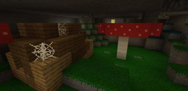 В моховых пещерах вы можете наткнуться на гигантские грибы и небольшие структуры.