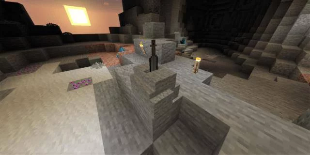 Пещеры Края представляют собой традиционный ландшафт этого мира в Майнкрафте, вы можете наткнуться на многие виды рудные жилы.