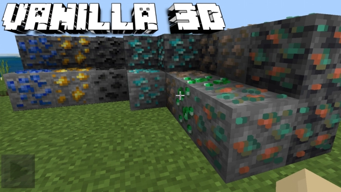 После установки мода Ванилла 3D (Vanilla 3D), классические блоки, например, с рудой, получат в Minecraft Bedrock небольшое количество трехмерных элементов. Этот прием практически «оживляет» блоки, делает их вид круче. Если в вашем распоряжении есть возможность включить трассировку лучей в Minecraft, то обязательно сделайте это.