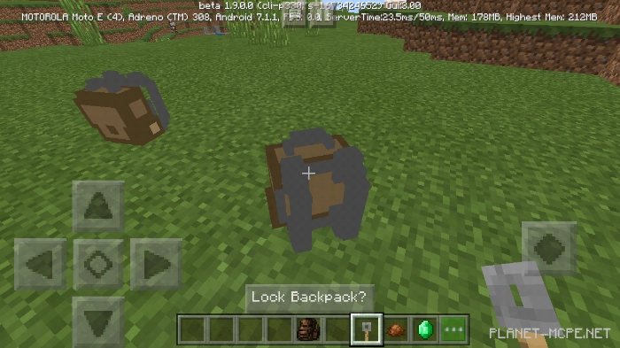 Если Вы держите крючок в руке и нажмёте приручить, тогда рюкзак заблокируется, а другие игроки Майнкрафт Бедрок больше не смогут открыть Ваш рюкзак.