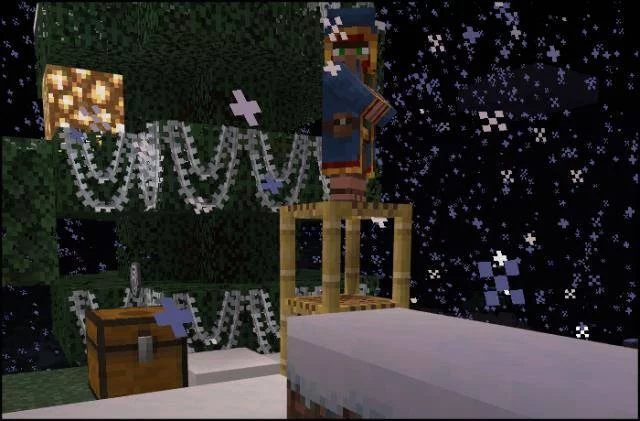 Кое-что еще. В ванильном Майнкрафте есть предмет, которым можно украсить новогоднюю елку. А вот какой это именно предмет — секрет. Отыщите его сами!